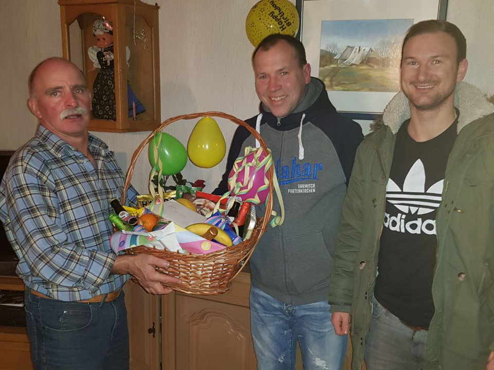Zum 60. Geburtstag von SGSO-Betreuer Johann "Neppel" Ruth am 06.02. überbrachten Olli Hug und Jens Göhring die besten Wünsche der aktiven Mannschaften.